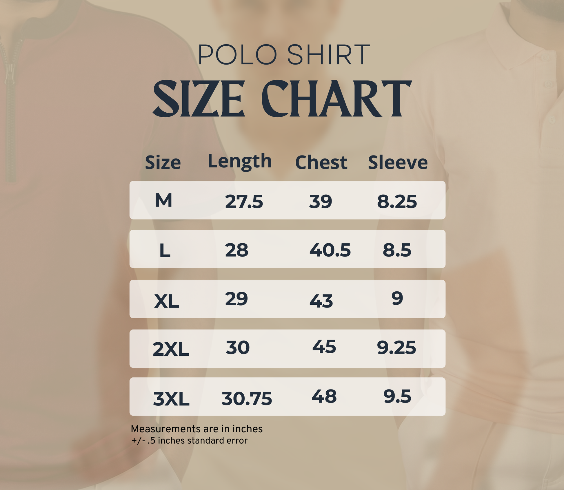 M: Length- 27.5 | Chest- 39 | Sleeve – 8.25